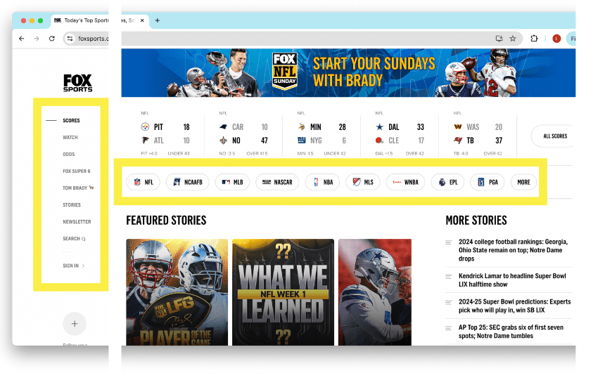 FOX Sports navigation bar